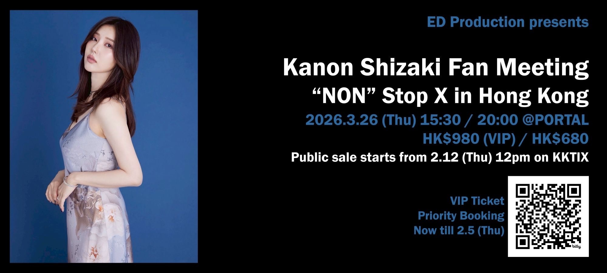 【お知らせ】Kanon Shizaki Fan Meeting “NON” Stop X in Hong Kong VIPチケット先行予約スタート